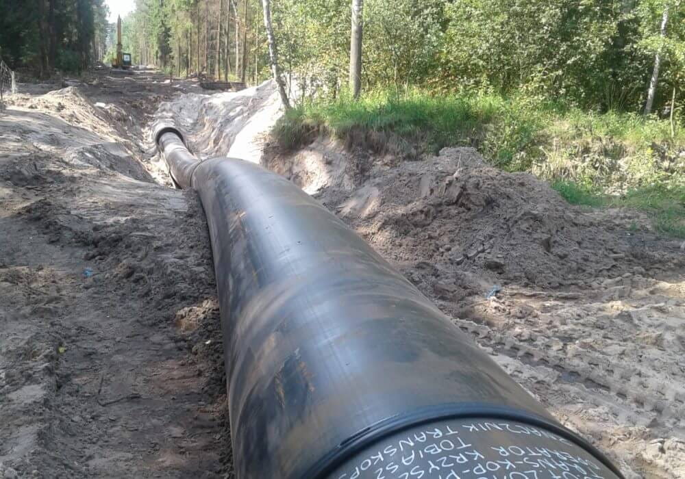 In total, 201 pipes PE100 SDR17 DN910x53,9 with a length of 15 m each and 386 pipes PE100 SDR11 DN980x88,9, also 15-metre long, were produced for the construction of the raw water pipeline. Deliveries of pipes and fittings took place in the period from October 2017 to September 2018. This required the mobilisation of more than 170 transports. Every delivery had to be carried out according to the procedures of the construction site, so it had to be notified in advance each time due to the need to unload and arrange for the storage of the materials.