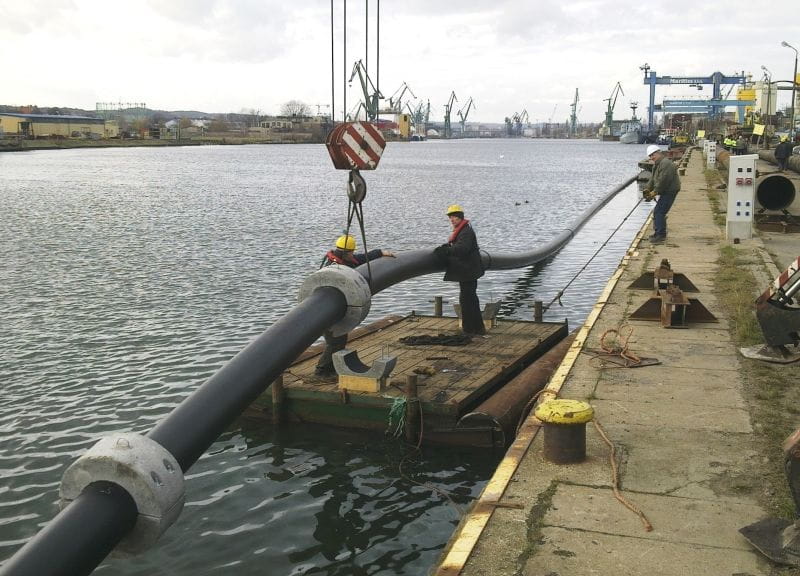 The technological pipelines transporting the brine washed out during the construction of underground gas storage facility followed by its discharge into the Puck Bay.