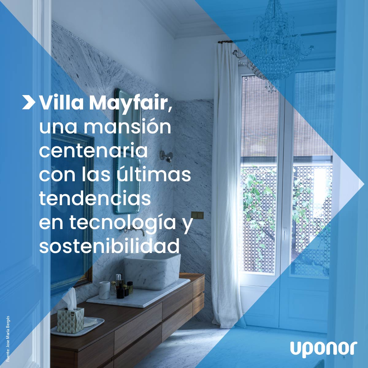 Villa Mayfair's commitment to sustainability can be found in every detail. It is reflected in many small actions that we have been incorporating,’ says Cristina Rodríguez. From the thermal and acoustic insulation, which allows us to be inside a space in the middle of the Via Augusta and forget the noise of traffic, to the systems selected both for the production of hot water and for heating and air conditioning using aerothermal energy. The use of Uponor's Invisible Underfloor Heating in all rooms provides greater comfort and allows operation at low temperatures. Installation of a home automation system that facilitates the control of air conditioning, heating and lighting with programmed and centralised switching. Presence detectors that turn off the lights when there is no one in the rooms. The installation of chargers for electric vehicles...’, explains the interior designer.