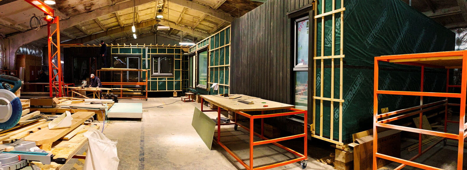 The modules are produced at the DERVUS factory with interior and exterior finish, have door and window assemblies installed and are even fitted with furniture and a kitchen, which minimizes the work to be performed at the construction site.