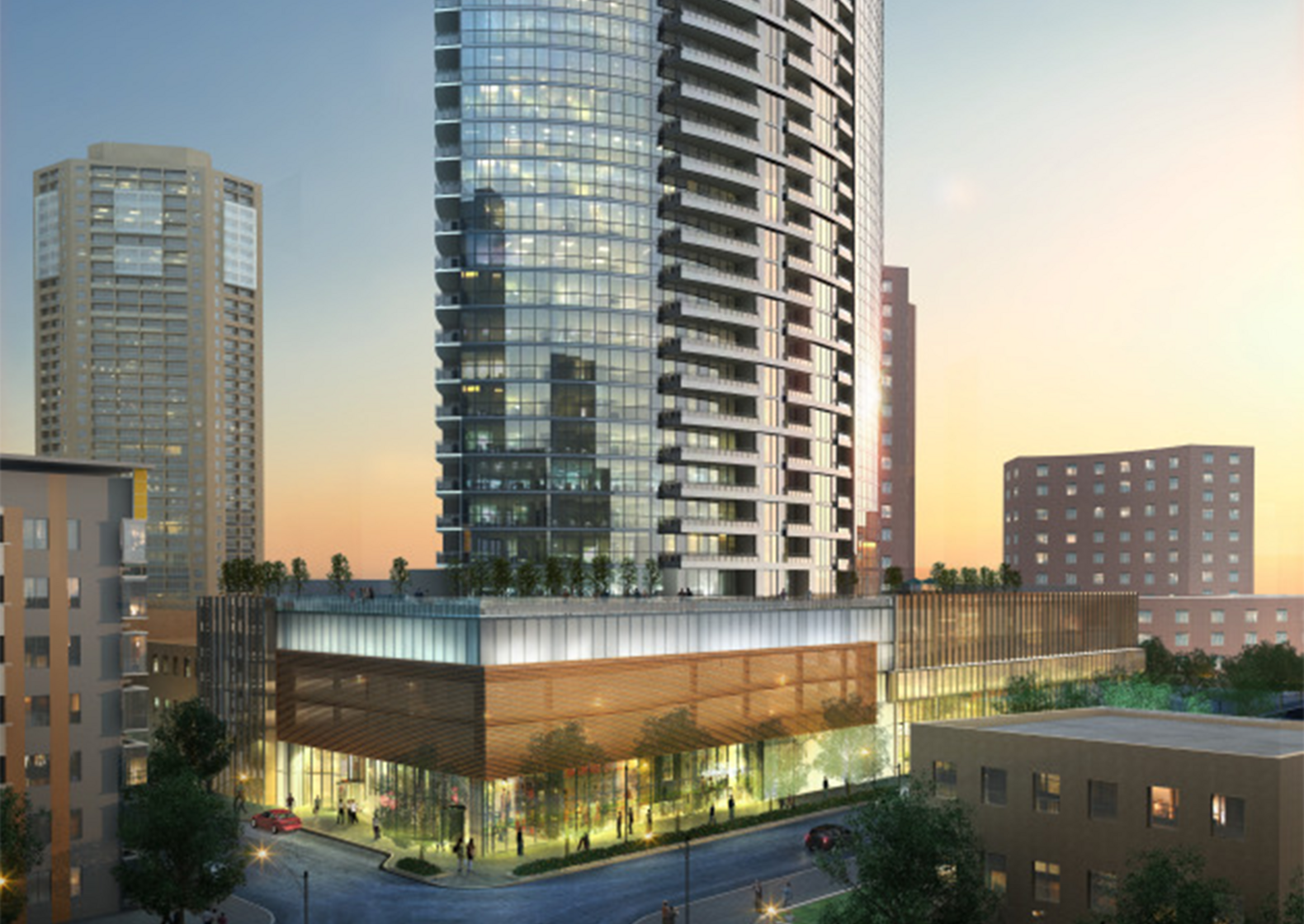 The $100M Loring Park Tower in Minneapolis is the first apartment tower built in downtown Minneapolis in more than three decades. The 36-story, 366-unit apartment tower opened in the fall of 2014 and includes many amenities, such as a fitness center, business center, pool, movie theatre and lounge.